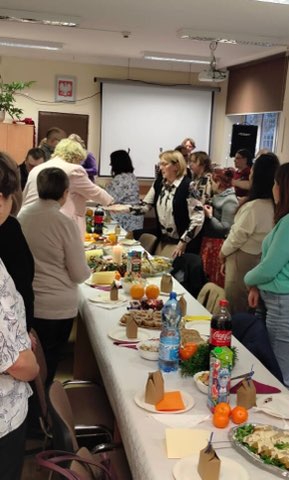 Spotkania przedświąteczne to nasza piękna tradycja, to nasz wspólny czas, to nasze rozmowy, refleksje, nasza radość bycia ze sobą i świętowania przy stole. Spotkaliśmy się w środę, 9 kwietnia o godzinie 14. W sali konferencyjnej naszego Szpitala prawie 30 Członków Olsztyńskiego Stowarzyszenia Pomocy Psychicznie i Nerwowo Chorych złożyło sobie życzenia i w radosnej atmosferze spędziło ten czas.